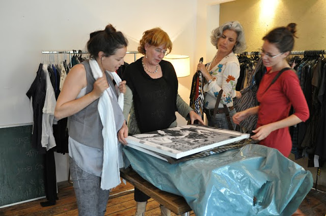 ערב שישי,בין הערביים ובין תערוכות אחת שמוסרת והשניה שנתלית מתקיימת מכירת בגדים בגורג, צלומי פלורנטין בדיאלוג עם באי קפה george יהודה הלוי 93 פינת נחמני