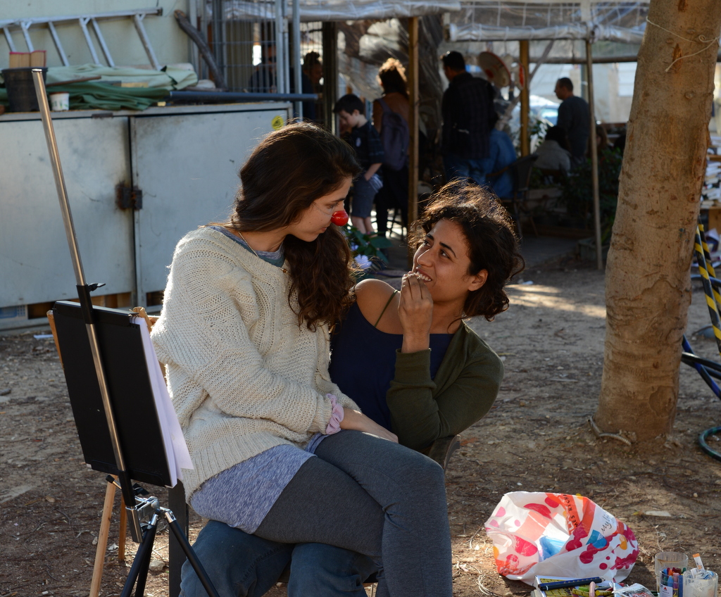 הנה מפגש חברות סיוון שלומדת ליצנות רפואית ואדוה רושמת פורטרטים ועובדת