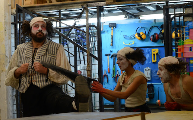 בחדר סמוך התקיימה סדנת ניסור שהתכתבה גם עם המתרחש בתיאטרון