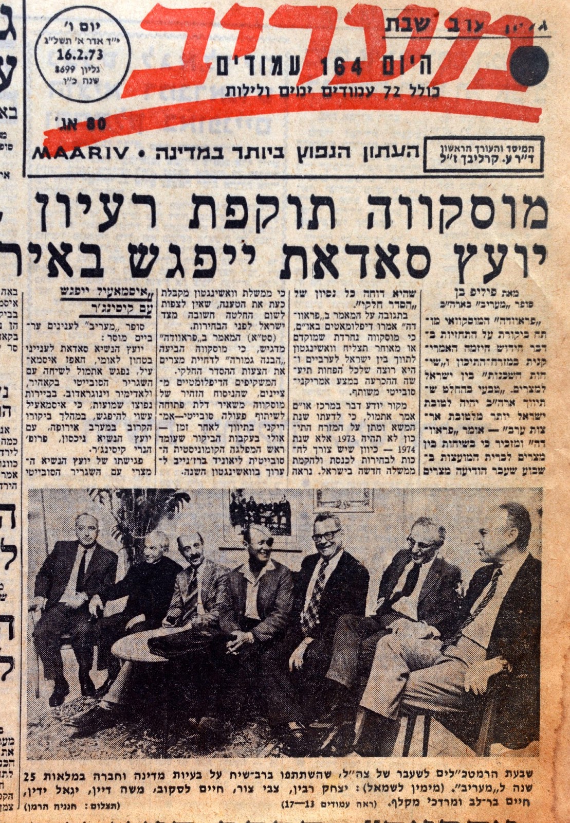 עבורי אז כצלם מתחיל בן 21 המפגש עם דמויות מיתולוגיות כמו משה דיין ,יגאל ידין חיים לסקוב היתה חוויה מקצועית מרגשת שהועצמה גם מתוך שהוזמנתי למשימה זו ע"י כמה מבכירי עורכי "מעריב" שהשתתפו בו.