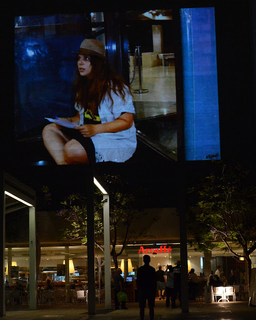 .ישבנו שם בככר הבימה בתוך הקהל הרב שהגיע ,מרותקים צופים בדפני על קיר התאטרון הלאומי