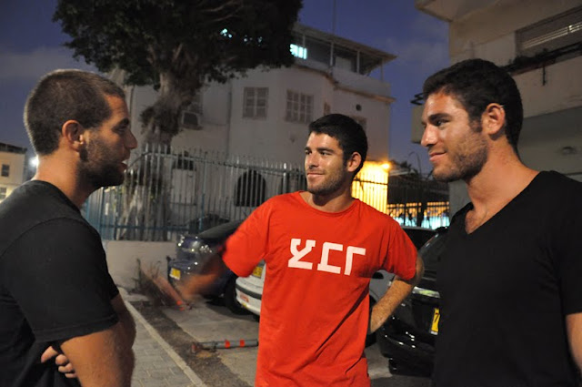 בצילומים למטה :דניאל משמאל נפרד מאבי חולצה אדומה במרכז ומיואב אחיו ערב חזרתם מת"א לארה"ב בקיץ 2009