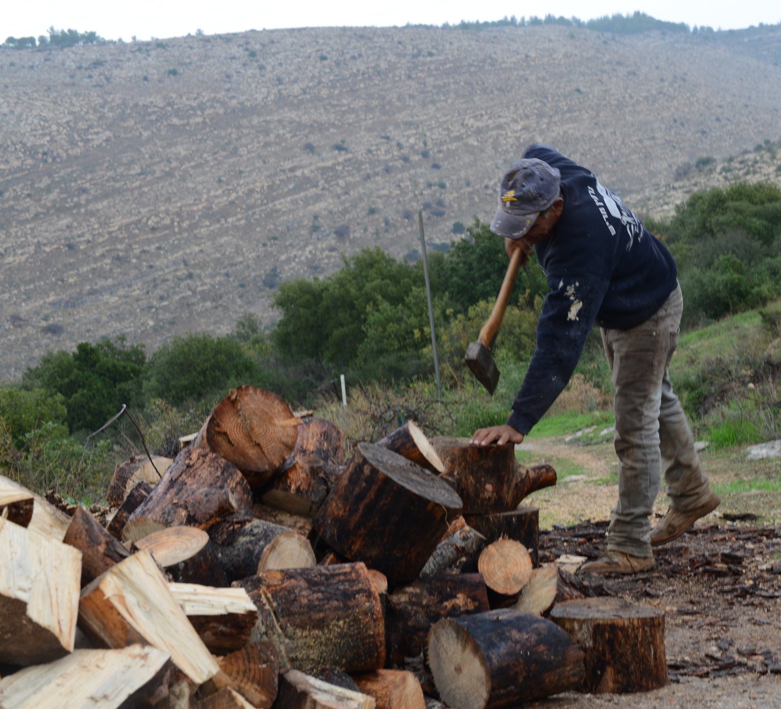 .היה שקט של ריכוז. הניח גזע על גזע ובאותה תשומת לב שעשה זאת רגע קודם ,התרחק מעט התייצב ,עיניו מטווחות , ידיו אוחזות בגרזן כמו במקשה אחת , מניף אל על ובתנופה מכה בעץ . וואהל שמו, רק מלראות אותו מתמלאים כוח, הוא והכלי הם אחד , זו מלאכה מהפנטת . שוב ושוב הוא אוסף בוחן איפה להניח את הגזעים המבוקעים .מעצב ערימה . "העבודה הזו שומרת אותי צעיר כמו הילד שהייתי פעם ". בלילה יחזור לכפרו מעבר לגדר לארץ הגבעונים. מייחל ליום שחוטבי העצים ושואבי המים יקבלו את החרות הכבוד המגיע להם .